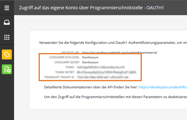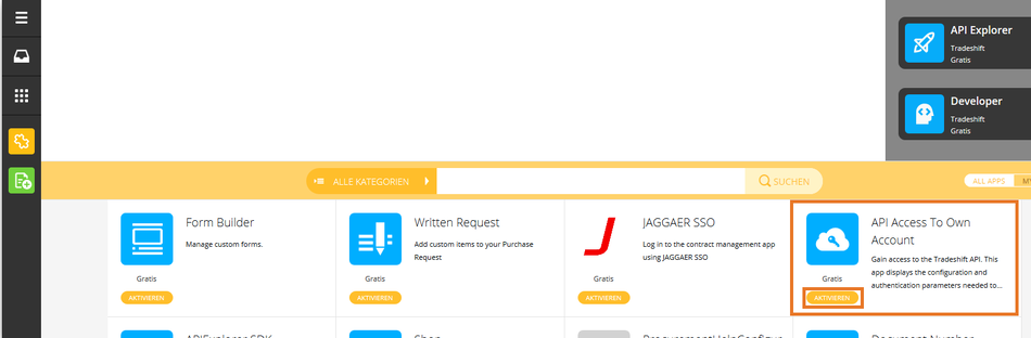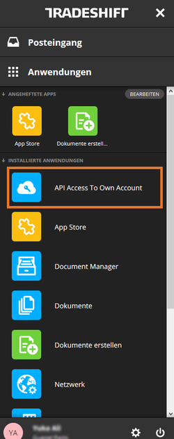 API in Tradeshift Account App Store aktivieren und API Daten einsehen.