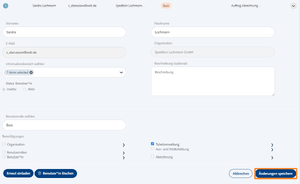 Benutzerdaten können nur von berechtigten Benutzer*innen geändert werden. Sollten Sie keine Benutzer*innendaten ändern können, wenden Sie sich bitte an Ihre/n zuständige/n Administrator*in.