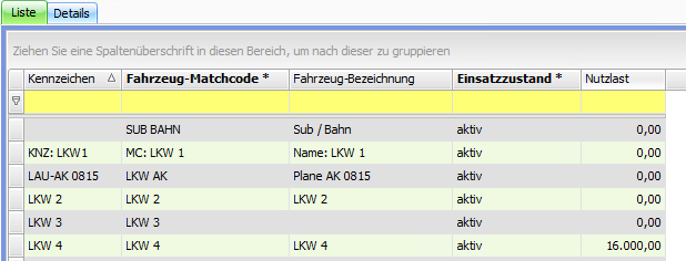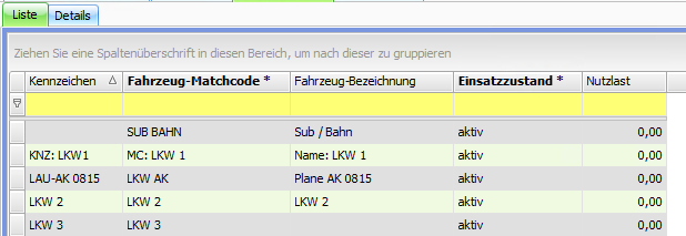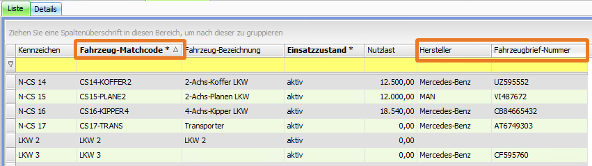 Spalten und Sortierung werden verändert