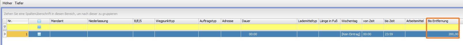 Die Ladezeitmatrix wurde um eine Spalte "Bis Entfernung" erweitert. Hier kann man eine Entfernung eintragen, die bei der Auswertung der Ladezeit auf die Gesamtkilometer der Tour gehen. US#: 119470