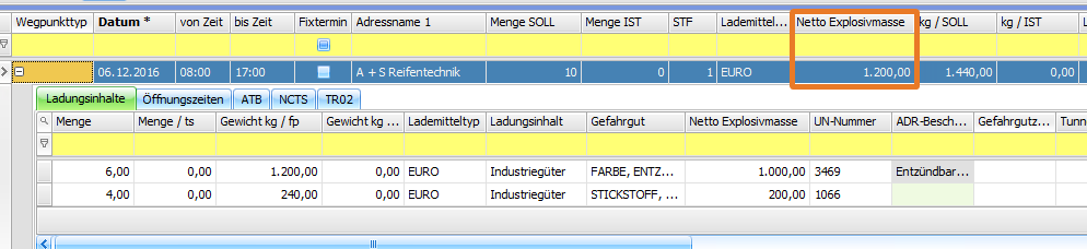 WP Spalte Nettoexplosivmasse (CR 119347)