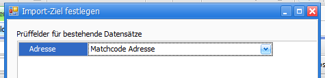 Dies ist z.B. relevant, wenn man zunächst Adressen über eine Excelliste importiert und die Exceliste danach noch weiter bearbeitet. Wenn man dann die komplette Excelliste erneut importiert, kann man - wie im Beispiel - als Prüffeld für bestehende Datensätze den "Matchcode Adresse" auswählen. Dadurch wird beim erneuten Import kontrolliert, welche Adressen schon in cargo support vorhanden sind: