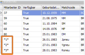 Neue Datensätze werden vor dem Import mit Sternchen * * versehen: