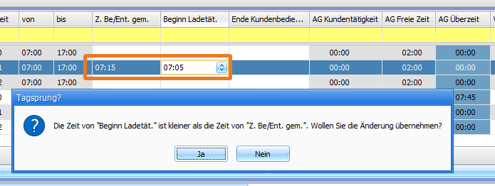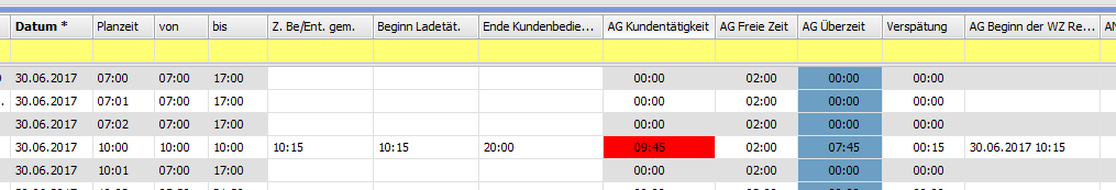 2. 'Ende Kundenbedienung' muss größer sein als 'Beginn Ladetätigkeit'