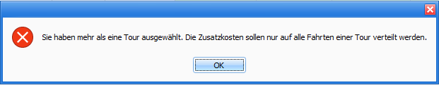 Die Fahrten der Tour brauchen nicht alle markiert sein, damit die Kosten übernommen werden. Es reicht aus, mit dem blauen Balken eine Fahrt der Tour zu markieren. Ist mehr als eine Tour markiert, erscheint eine entsprechende Meldung.