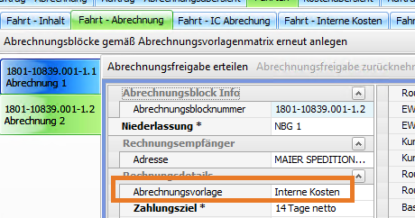 Im Menü Vorgaben > Abrechnung > Abrechnungsvorlagenmatrix gibt es eine neue Berechnungsvariante "Einzel" für den automatischen Eintrag der Abrechnungsvorlage im Abrechnungsblock.