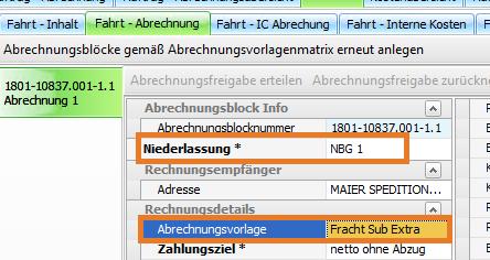 Abrechnungsblock 1: Treffer bei Position 2: Niederlassung "NBG1"