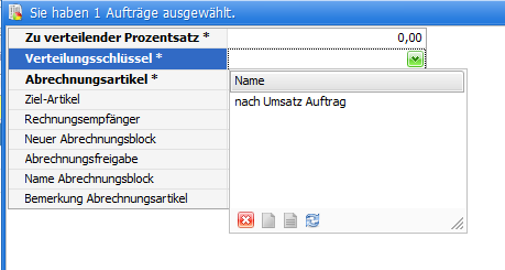 Auftrags- oder Fahrtenliste -> Rechtsklick-Menü -> Frachtkostenumlage -> Verteilung nach Prozent