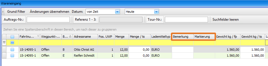 Wareneingang - weitere Spalten ergänzen (CR 134423)