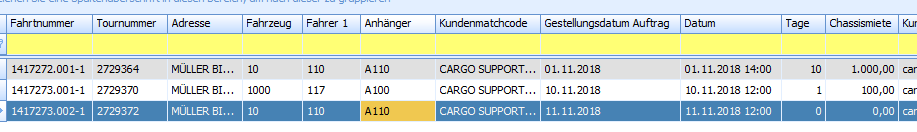 Sobald die zweite Fahrt auf "In Durchführung" geht, verschwindet der Eintrag aus der Auswertung.