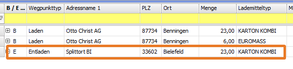 Es wurden die gleiche Anzahl Wegpunkte für den Splitort angelegt, wie vor dem gewählten Splitort erfasst sind (hier: Splitten nach dem letzten B > Anzahl Wegpunkte bis einschließlich Splitort = 2 )