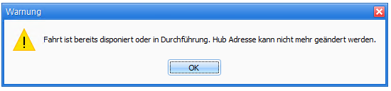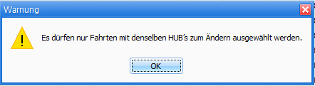 Wurden Fahrten mit verschiedenen Hub-Adressen ausgewählt, erscheint eine Warnung.
