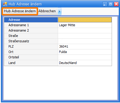 Im Dispoplan markiert man die erste der gesplitteten Fahrten (Vorlauf, Vorholung oder ähnlich genannt) und wählt im Rechte Maus Menü > Aktion > Hub Adresse ändern. Es öffnet sich dann ein schwebendes Eingabefenster zur Eingabe des neuen Splittortes bzw. einer freien Adresse.