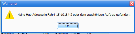 Hat der Auftrag zur gewählten Fahrt keinen Multistop-Wegpunkt, erscheint eine Warnung.