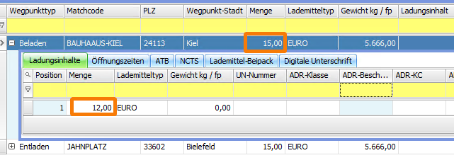 - Berechne Unterwegpunktdaten oder Wegpunktdaten (Standardeinstellung) - bisherige Logik: wenn Ladungsinhalte gefüllt sind, dann diese nehmen ansonsten die Werte vom Wegpunkt