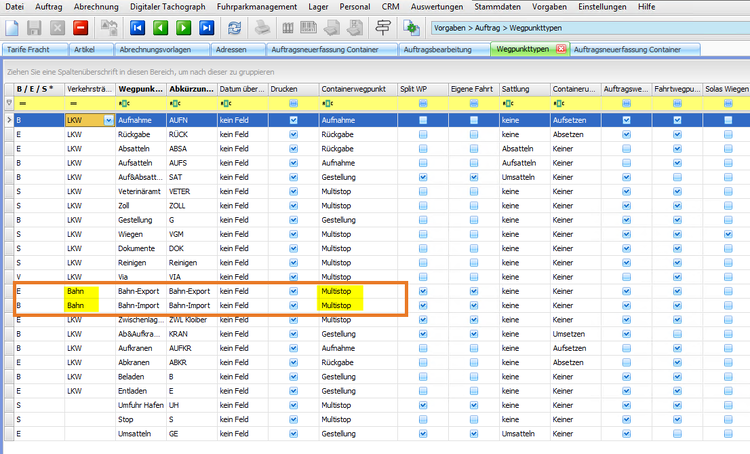 Wegpunkttypen können für gewisse Geschäftsmodelle (z.B. Intermodal-Aufträge) erfasst werden.