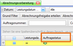 Nun gibt es eine Möglichkeit in der Abrechnungsvorbereitung > Liste eine Spalte hinzuzufügen: Auftragsstatus.
