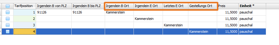 In den Vorgaben > Abrechnung > Tarife Fracht wurden neue Spalten als Kriterien für die Preisfindung ergänzt: