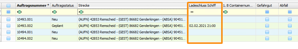 Außerdem wurde die Spalte in cs PLAN in den Fenstern Containerdispo und Alle Fahrten eingefügt und der Ladeschluss der Schiffe ist damit für Disponenten jeweils leicht einsehbar.