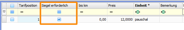 In den Vorgaben > Abrechnung > Tarife Fracht wurde die Spalte Siegel erforderlich ebenfalls als Kriterium eingefügt.