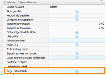 Hier kann markiert werden, wenn z.B. bei Export-Containern eine Versiegelung erforderlich ist.