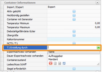 - Der Haken NCTS / T1 kann auch autark genutzt werden, das Füllen des Felder T1 Erstellung durch ist keine Pflichteingabe.