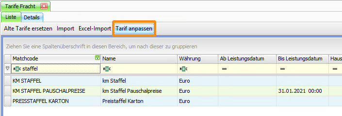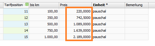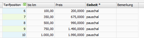 Anschließend werden die Tarifpositionen wunschgemäß geändert.