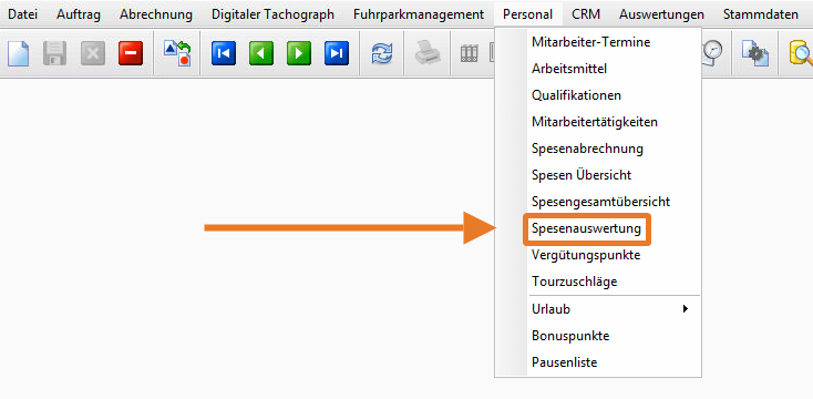 Unter dem Hauptmenüpunkt Personal gibt es ab sofort einen neuen Menüpunkt Spesenauswertung.