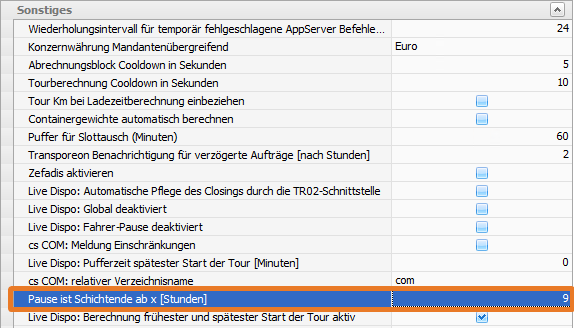 Damit in den importierten Fahreraktivitäten das Pause-Event und Schichtende korrekt berechnet und dargestellt werden, muss unter Einstellungen >Softwareeinstellungen > Menü > Globale Einstellungen dafür noch zwingend die gewünschte Stundenzahl der Pause definiert werden.