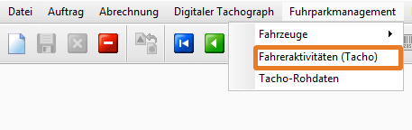 Im Hauptmenüpunkt Fuhrparkmanagement gibt es ab sofort den Menüpunkt Fahreraktivitäten (Tacho). Dieser ersetzt die Fuhrparkverwaltung.