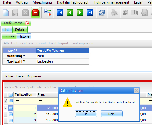Bisher konnte lediglich das Recht vergeben werden, dass Tarifpositionen gelöscht werden dürfen. Nun kann differenziert werden, ob Tarifpositionen und / oder ganze Tarife gelöscht werden dürfen.