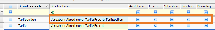 Bisher konnte nur ein Benutzerrecht unter Vorgaben > Abrechnung > Tarife Fracht eingerichtet werden: