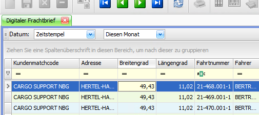 Digitaler Frachtbrief: neue Auswertung (CR 188659)