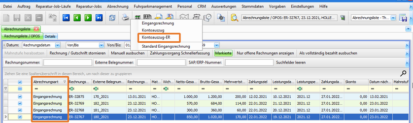 In der Abrechnung > Abrechnungsliste können markierte Eingangsrechnungen nun über Drucken > Eingangsrechnungen als Kontoauszug/Zahlungsavis angedruckt werden. Bisher war das nur bei Ausgangsrechnungen möglich.
