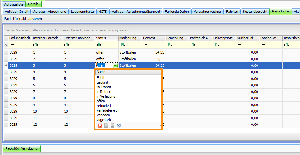 Im Zuge der Programmierung für die Be- und Entladescannung per App wurden neue Status für die Packstücke eingeführt. US# 185268