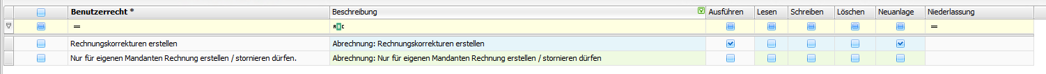 - Rechnungskorrekturen erstellen: Mit diesem Recht hat ist eine generelle Anwendung der Funktion, ohne Einschränkungen, möglich.