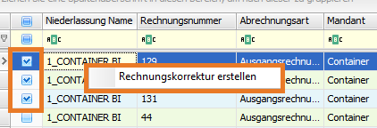 - Nur für eigenen Mandanten Rechnungen erstellen / stornieren dürfen: Die Funktion ist nutzbar allerdings mit der Beschränkung das dies nur bei Rechnung getätigt werden darf die zum eigenen Mandanten gehören.