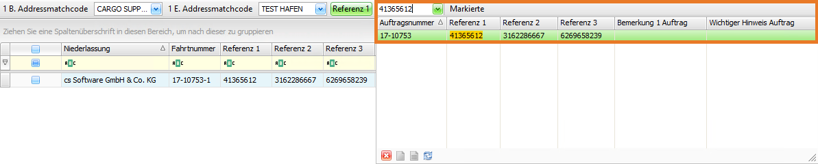 In cs JOB ist die Ansicht unter Auftrag > Avisierung > Fahrtavisierung um das Suchfeld Referenz 1 erweitert worden.