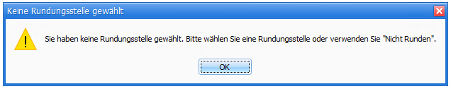 Wird diese Einstellung gewählt, muss eine entsprechende Rundungsstelle angegeben werden. Erfolgt das nicht, erscheint ein Hinweis: