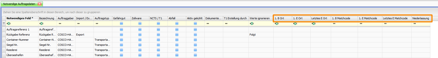 In den Vorgaben > Fehlende Auftragsdaten > Notwendige Auftragsdaten wurden folgende Spalten neu hinzugefügt: