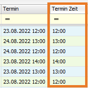US#: 237584 In cs PLAN steht in den Fenstern Containerdispo & Alle Fahrten eine neue Spalte zur Verfügung: Termin Zeit ' In dieser Spalte wird datumsunabhängig die Zeit aus dem bereits bestehenden Feld Termin angezeigt.
