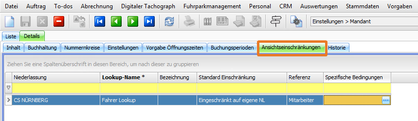 - Die Standard Einschränkung wird auf die eigene NL oder Mandant eingeschränkt