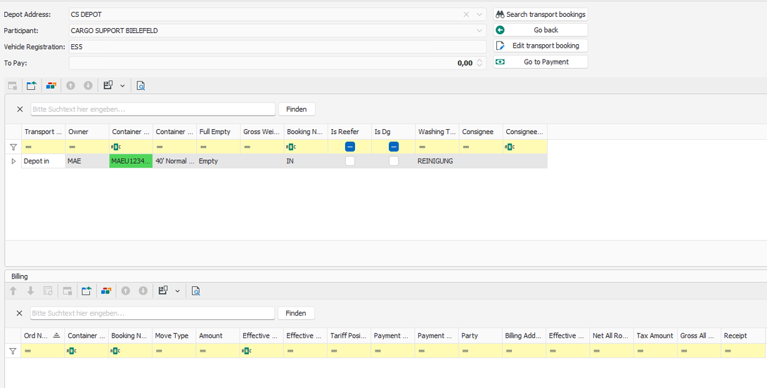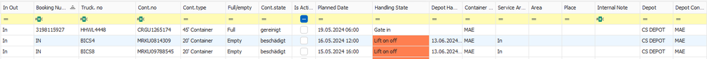 Im Reiter Booked Container sieht man, welche Gate Handlings mit dieser Freistellung bereits gebucht wurden.