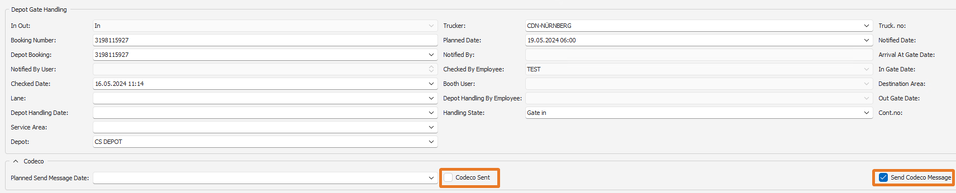 Ist Send Codeco Message angehakt, so soll hierzu eine Nachricht verschickt werden und ist Codeco Sent angehakt wurde diese auch verschickt.