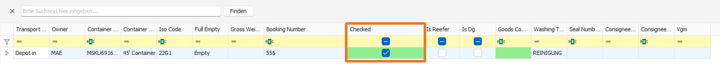 Öffnet man nun per Doppelklick die Anmeldung sieht man, dass der Container gecheckt wurde, da das Checking nach Erfassung sich automatisch mit dem entsprechendenTruck arrival verbindet.