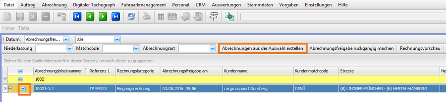 - Klick auf Abrechnungen aus der Auswahl erstellen