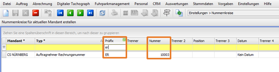 - Frachtführer eintragen und auf Speichern klicken oder F4